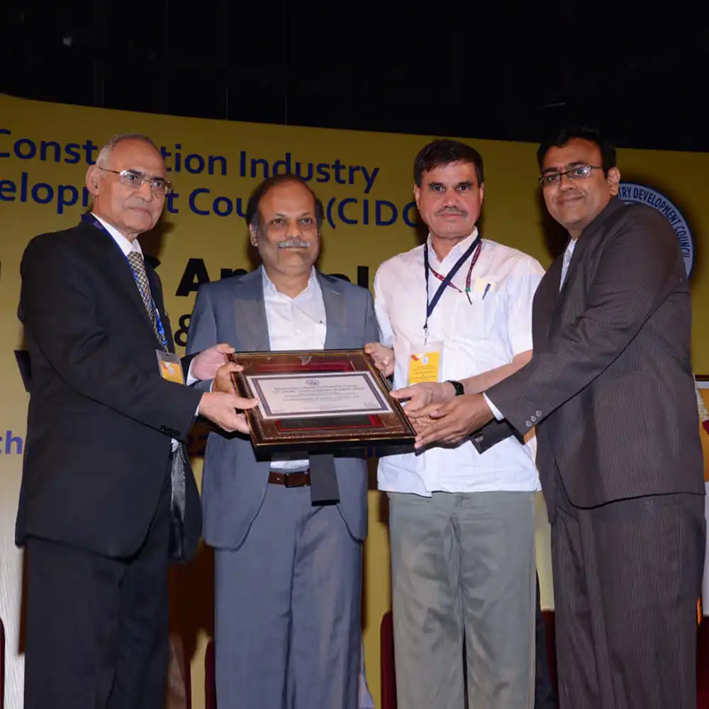 Galaxy, which is Hyderabad’s tallest precast commercial building won the prestigious CIDC Vishwakarma Award 2022 in the Best Pre-engineered Building Category. Distinguished Chief Executive, Mr. Ravindrakumar VJ, and Construction Head (The Regent project), Mr. VD Lakshmi Nadha Sarma were part of the award celebrations.