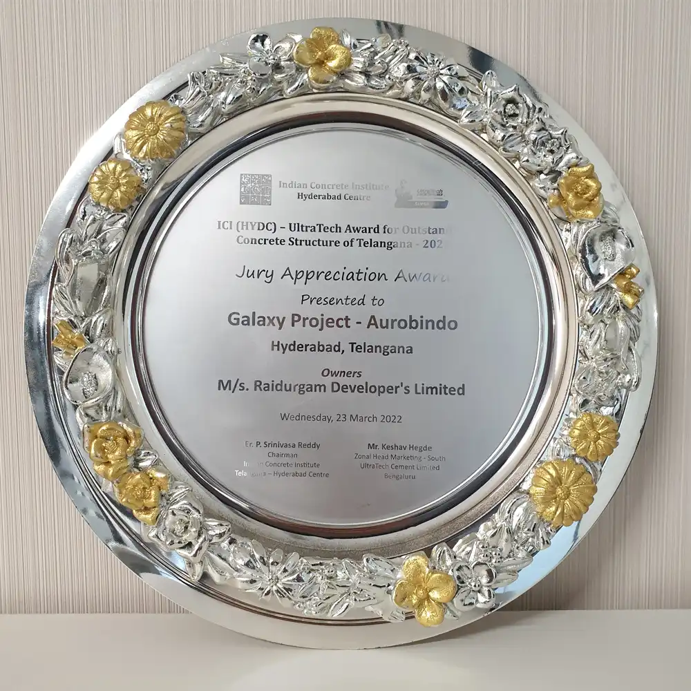 The Indian Concrete Institute, Telangana has bestowed us with the Outstanding Concrete Structure award for our commercial property - Galaxy. Our relentless efforts on sustaining quality, safety, and project completion in an impeccable manner have indeed become fruitful.
